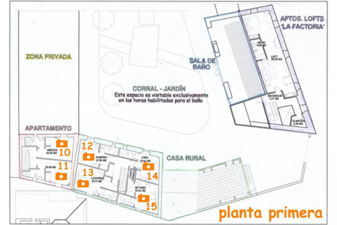 5 habitaciones dobles con cuarto de baño (1 habitación doble accesible en planta baja con cuarto de baño adaptado)